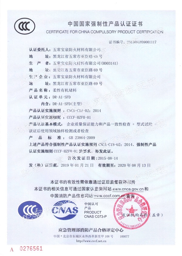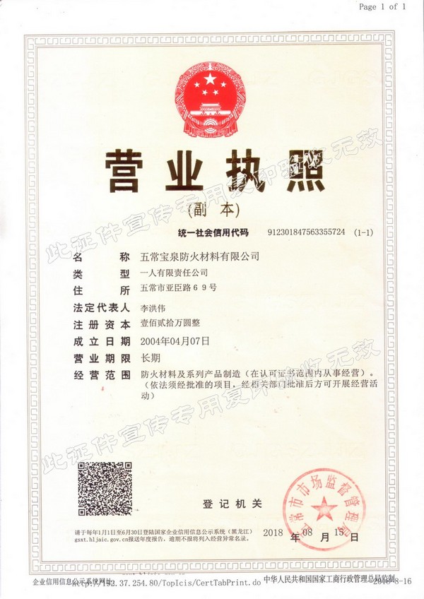 企業(yè)簡(jiǎn)介 五常寶泉防火材料有限公司(黑龍江省寶泉消防設(shè)備有限公司)是主要制造、經(jīng)營(yíng)、銷售防火阻燃材料系列產(chǎn)品。其中以自粘性阻燃包帶(ZFBD)、阻火包(PFB)、有機(jī)防火堵料(SFD)、室內(nèi)超薄型鋼結(jié)構(gòu)防火涂料(NCB(BCF)-1)為主要產(chǎn)品。寶泉牌防火材料系列產(chǎn)品是普通防火材料的更新?lián)Q代產(chǎn)品,防火性能優(yōu)異,具有普通防火材料沒(méi)有的諸多優(yōu)點(diǎn):施工方便、經(jīng)久耐用、耐火極限高、熱傳導(dǎo)率低、耐腐蝕、抗老化、無(wú)毒無(wú)害、環(huán)保、可以連續(xù)施工等特點(diǎn)。產(chǎn)品廣泛應(yīng)用于電力企業(yè)(各型電廠、輸變電公司、電建公司、電力公司)、石油化工企業(yè)、冶金業(yè)、通訊業(yè)、地鐵、隧道、...